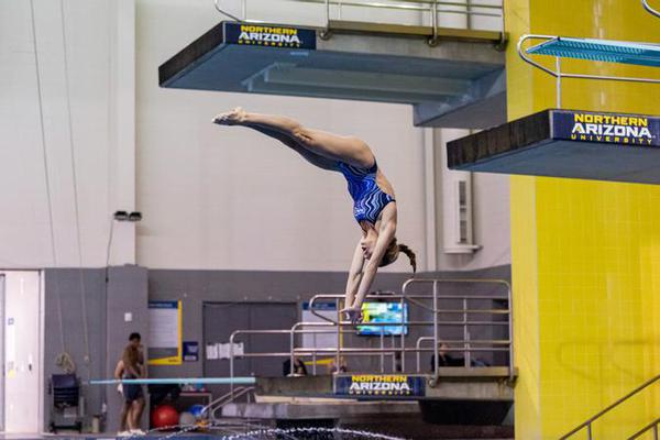 FLAGSTAFF, Ariz. (January 6, 2023) — In their final combined meet of the season in Flagstaff, NAU Swimming and Diving had a strong showing, tying Colorado State 150-150 and defeating North Texas 231-69, while honoring outgoing seniors Emily Luberto, Brooke Seiber, Iliana Moore and Haley Mayhew.
